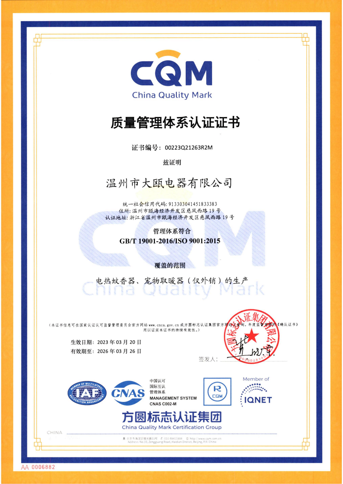 溫州市大甌電器有限公司(以下簡稱大甌公司)是集研發、制造為一體的日化電器專業生產制造商。